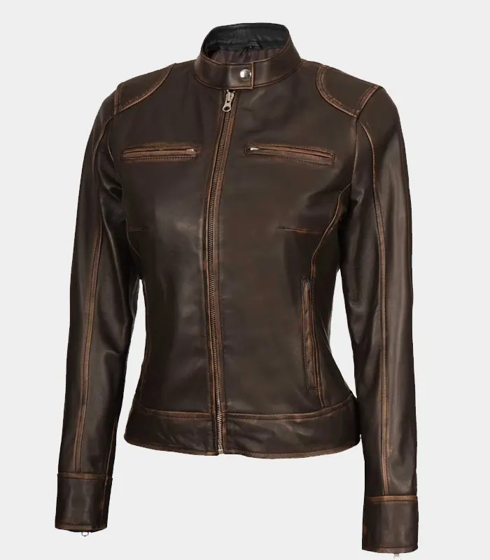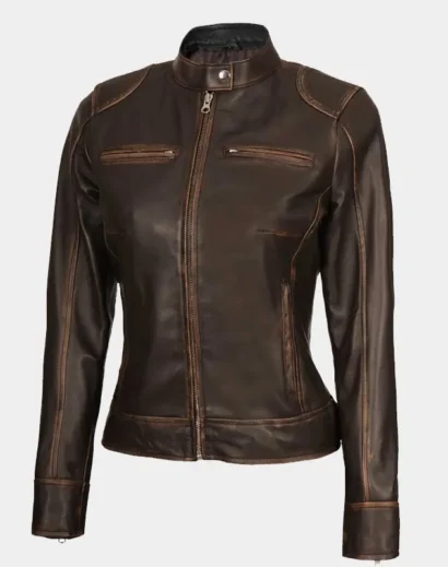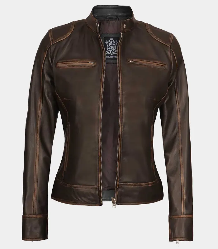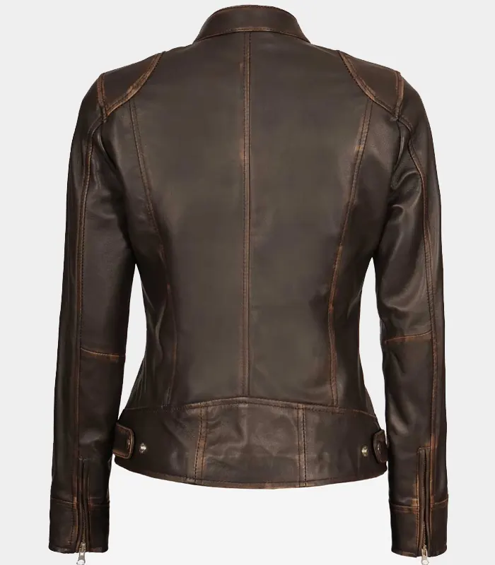 Becky Womens Rub Off Brown Vintage Leather Jacket