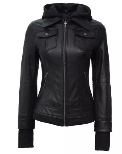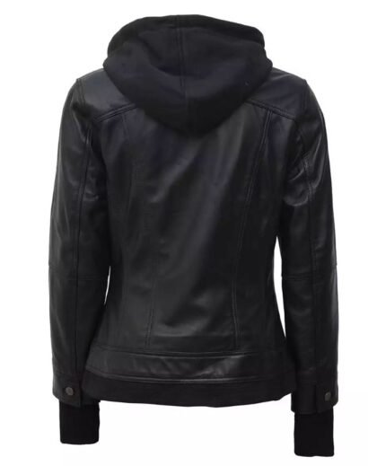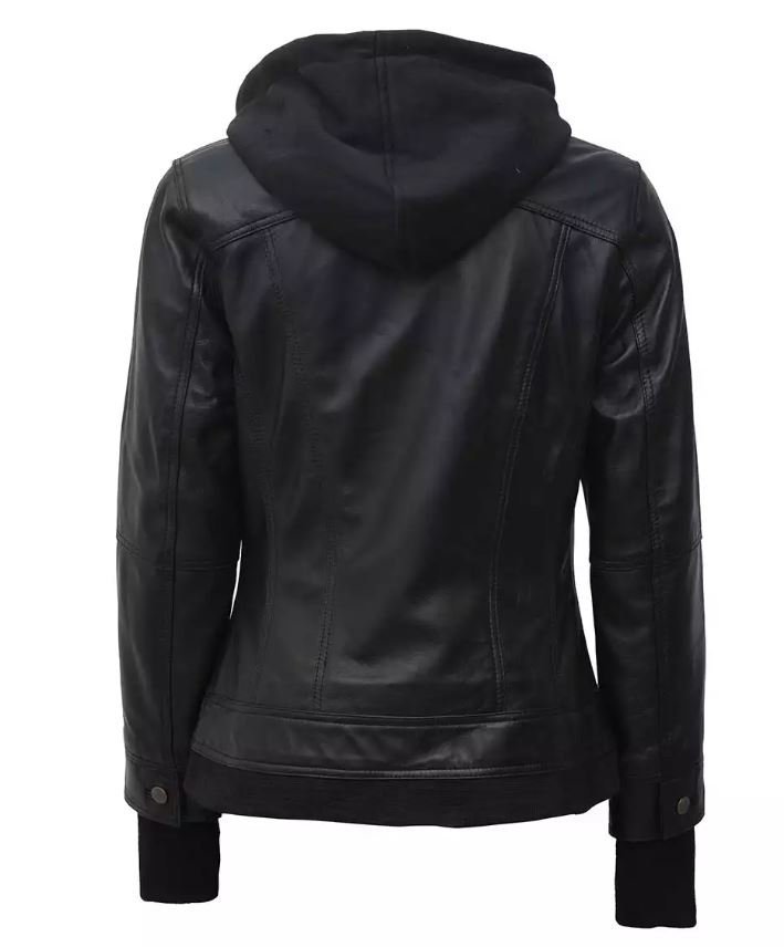 Beyoncé: Womens Black Removable Hood Bomber Leather Jacket